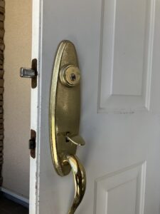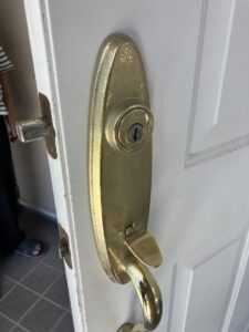 予約の時間にお伺いし見てみると、海外製の輸入ドアでKwikset社のTITANという種類の錠前が付いていました。