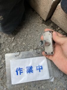 玄関の鍵穴がスポット抜けて壊れてしまったので直して欲しいと依頼電話が入りました、鍵穴がスポット抜けるって… なかなか無い症状です